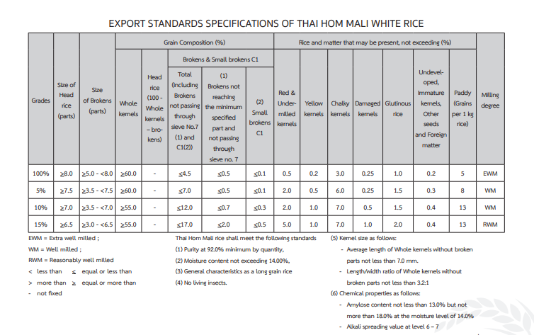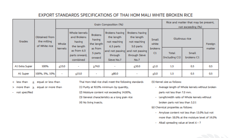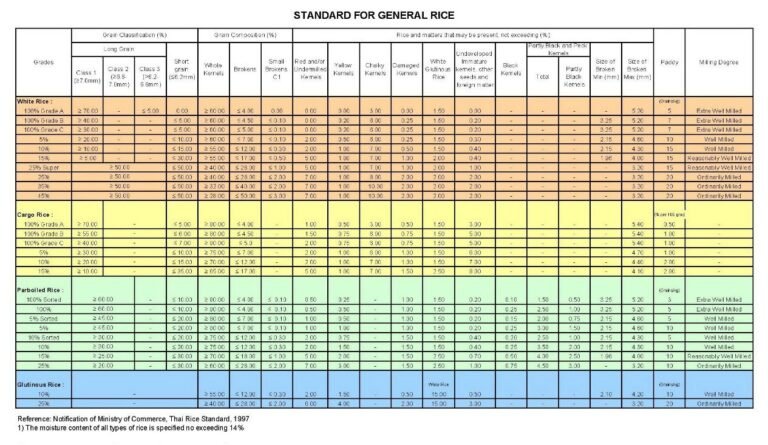 Thai Rice standard as per Ministry of Commerce